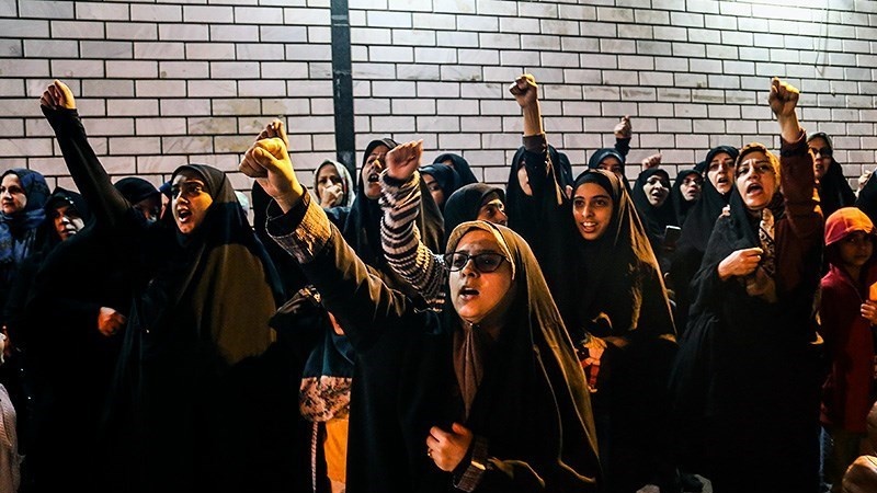 Mereka juga meneriakkan Takbir dan slogan-slogan anti-Amerika dan berterimakasih kepada pasukan IRGC (Pasdaran).