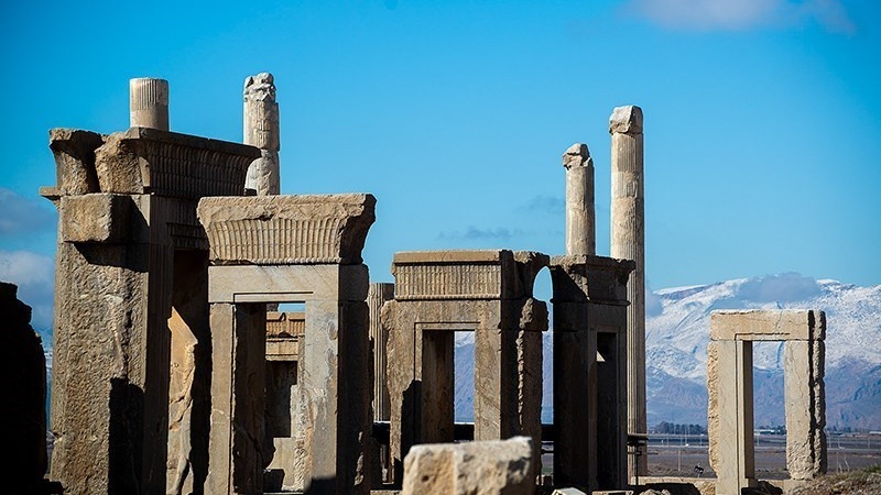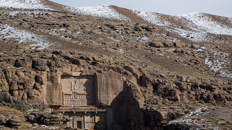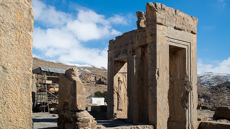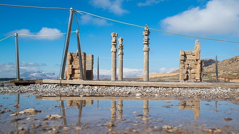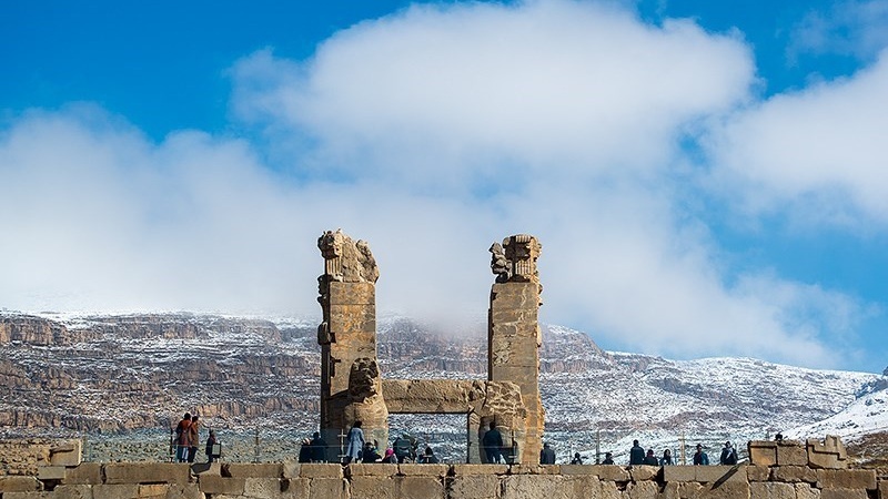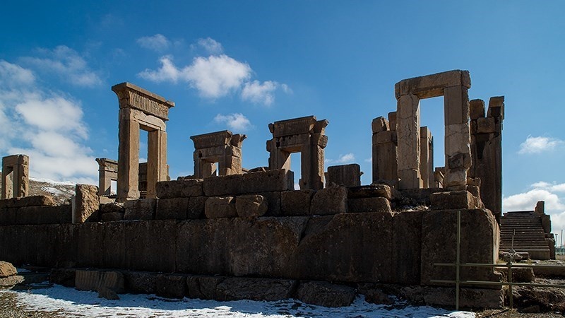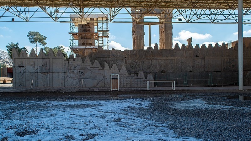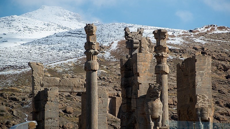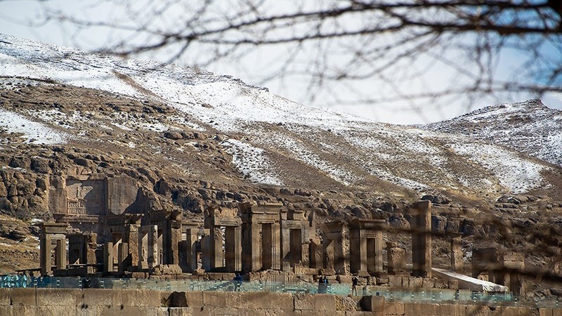Salju yang turun dalam beberapa hari terakhir dan mengguyur Kompleks Takht-e Jamshid membuat kompleks bersejarah ini seperti tampil berbeda.