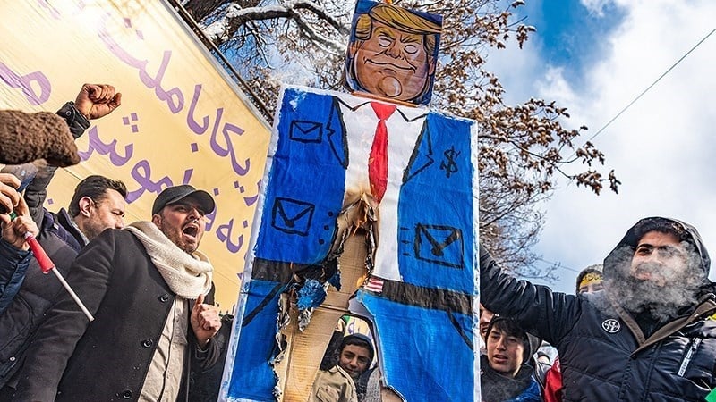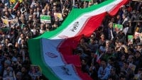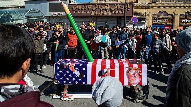 Rakyat Iran di berbagai kota, pada pawai 22 Bahman tahun ini,s juga membakar bendera Amerika dan Israel, mengusung keranda teroris Amerika, dan menegaskan pengusiran pasukan Amerika dari kawasan Asia Barat (Timur Tengah).