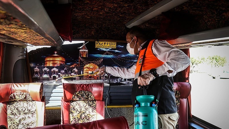 Seluruh terminal bus dan transportasi umum di Provinsi Khuzestan, barat daya Republik Islam Iran disemprot dengan cairan khusus (disinfektan) untuk mencegah penyebaran Virus Corona.