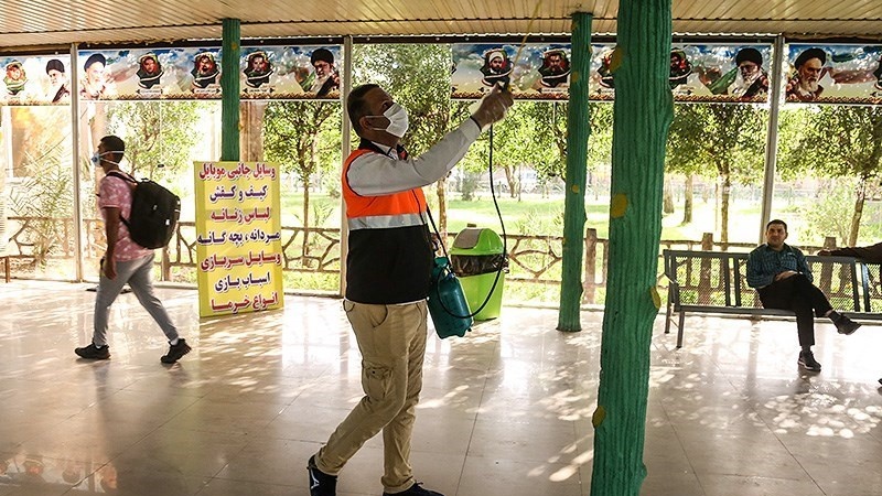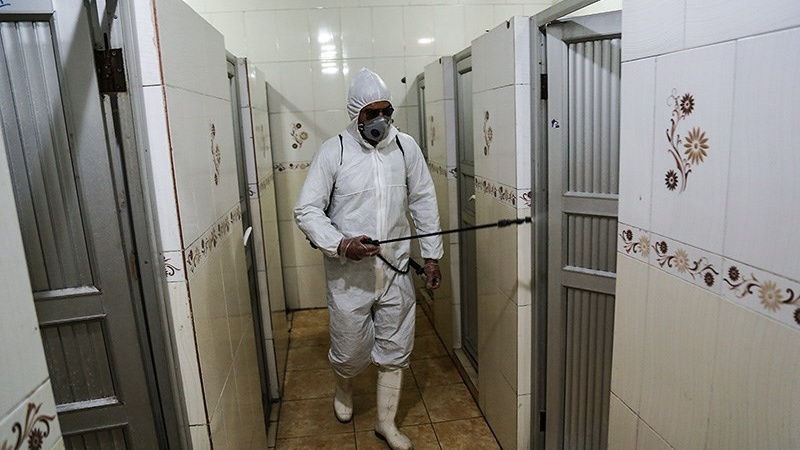 Penyemprotan itu dilakukan oleh Direktorat Jenderal Jalan dan Transportasi Provinsi Khuzestan menyusul bertambahnya jumlah pasien yang terkena Virus Corona.