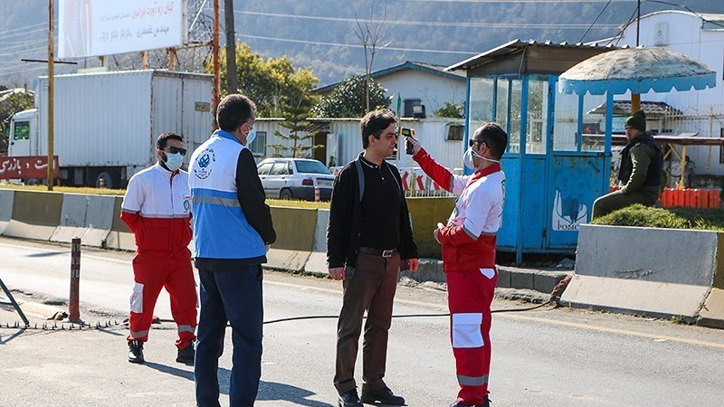 Menyebarnya virus corona di Republik Islam Iran mendorong unit-unit kesehatan untuk memerika suhu badan dengan termometer tembak terhadap para pengguna jalan yang menuju ke kota Gilan.