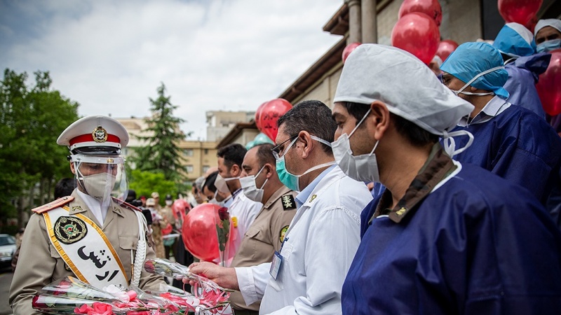 Militer Republik Islam Iran memberikan dukungan dan apresiasi kepada tim-tim medis di rumah sakit Hajar yang sedang merawat pasien virus Corona, COVID-19.