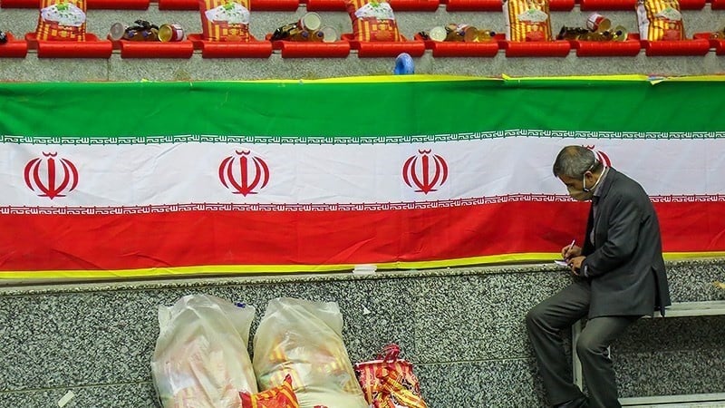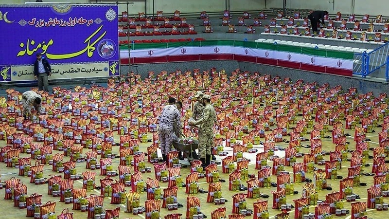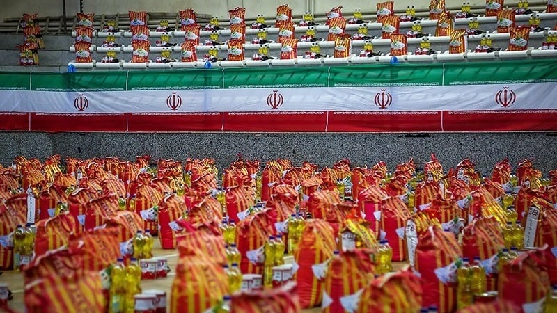 Pembagian ribuan paket bantuan sembako di Sanandaj.