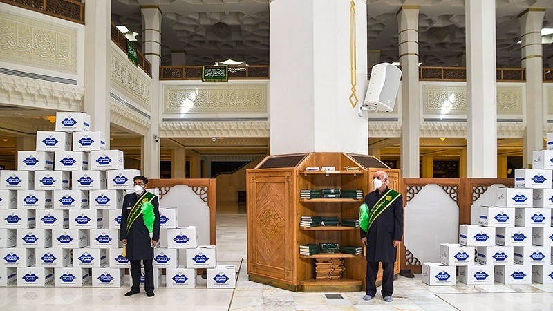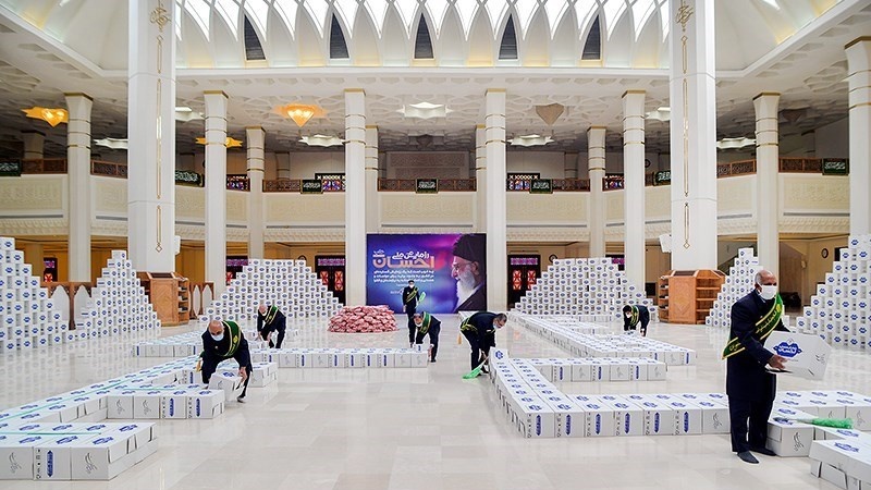 Badan Pelaksana Instruksi Imam Khomeini ra menyiapkan 40.000 paket hadiah dan sembako di Kompleks Haram Suci Shah Cheragh di Shiraz, Republik Islam Iran pada hari Minggu pagi, 3 Mei 2020.