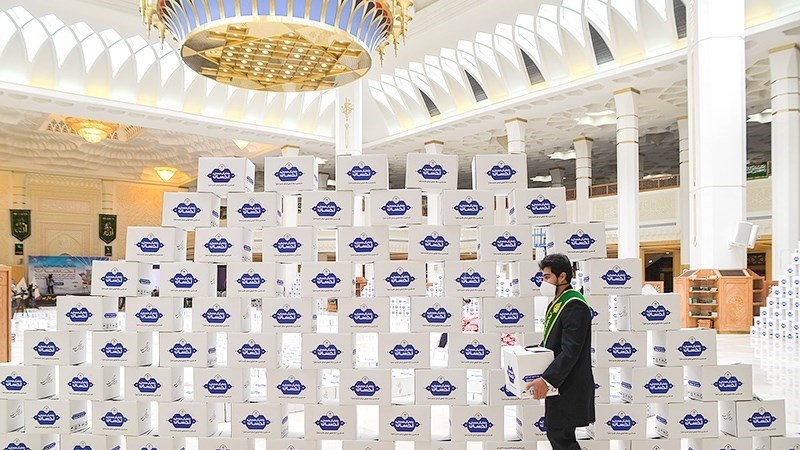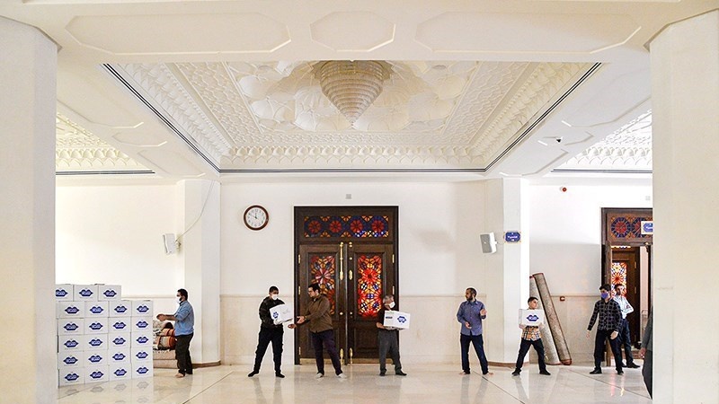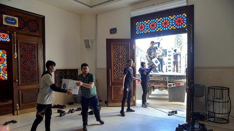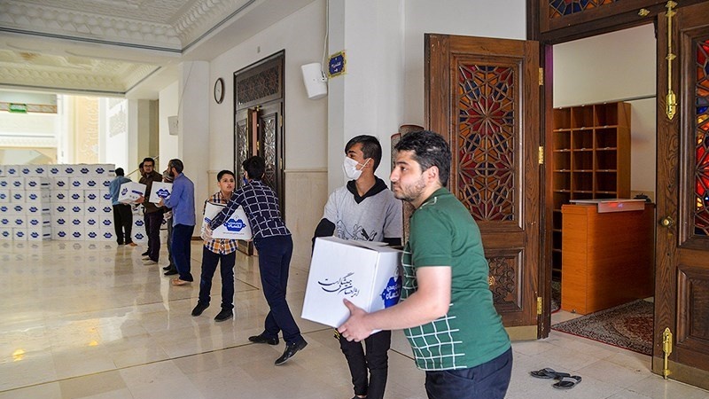 Badan Pelaksana Instruksi Imam Khomeini ra menyiapkan 40.000 paket hadiah dan sembako di Kompleks Haram Suci Shah Cheragh di Shiraz, Republik Islam Iran pada hari Minggu pagi, 3 Mei 2020.