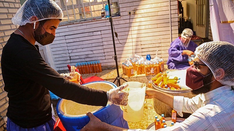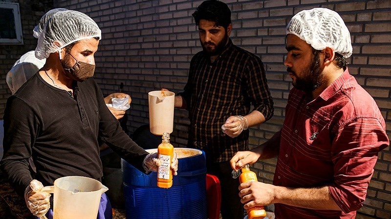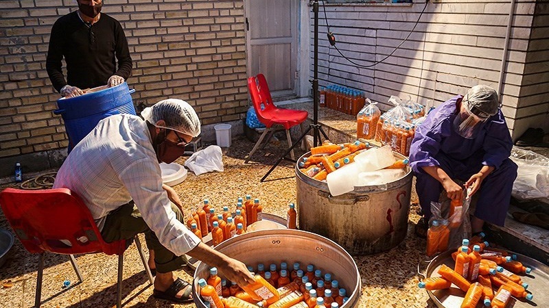 Kelompok-kelompok Jihad di Ahvaz, Provinsi Khuzestan, barat daya Republik Islam Iran menyiapkan jus dan makanan ringan gratis untuk dibagikan kepada dokter, perawat dan staf medis di rumah sakit-rumah sakit di wilayah ini.