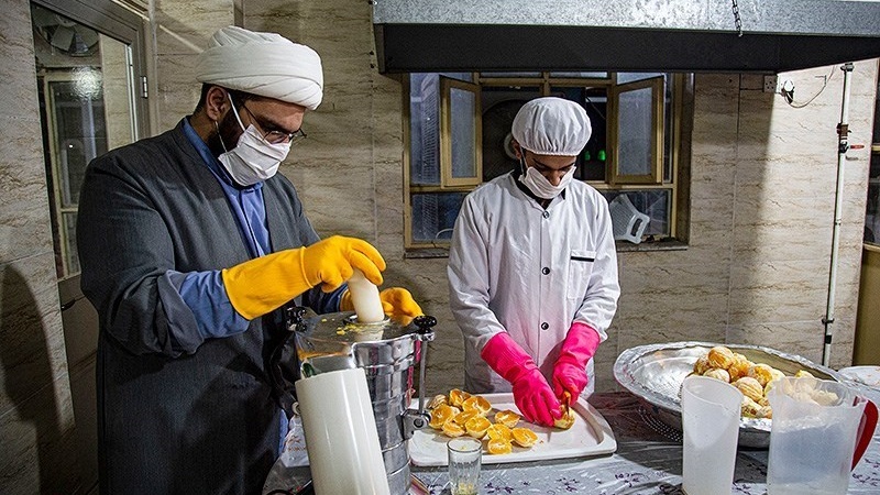 Kelompok-kelompok Jihad di Ahvaz, Provinsi Khuzestan, barat daya Republik Islam Iran menyiapkan jus dan makanan ringan gratis untuk dibagikan kepada dokter, perawat dan staf medis di rumah sakit-rumah sakit di wilayah ini.