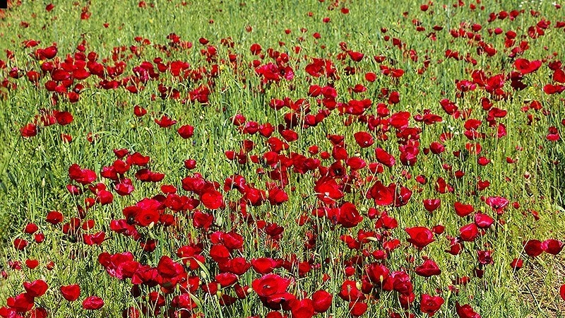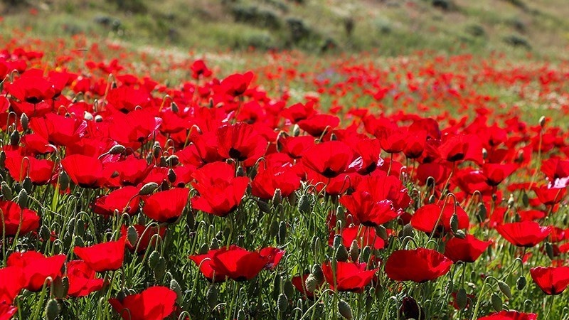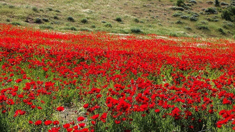 Bunga Shaghayegh (Poppy) yang berwarna-warni nan indah dan wangi tampak mekar di dataran Deylaman, Kabupaten Siahkal di Provinsi Gilan, Republik Islam Iran.