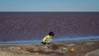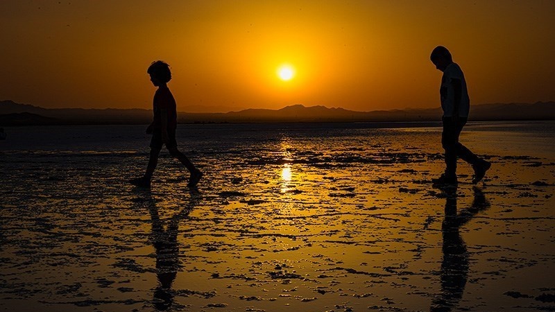 Warga yang merasa penasaran, mendatangi Danau Namak dan menikmati keindahan danau garam ini. (RA)