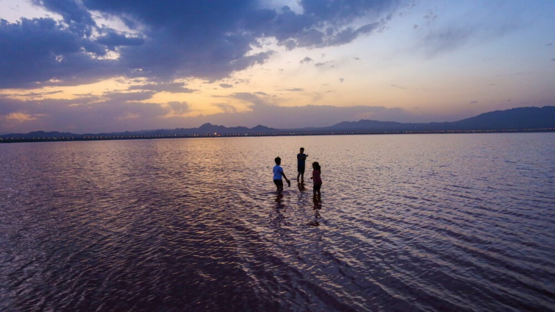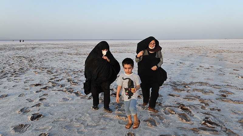 Warga yang merasa penasaran, mendatangi Danau Namak dan menikmati keindahan danau garam ini. (RA)