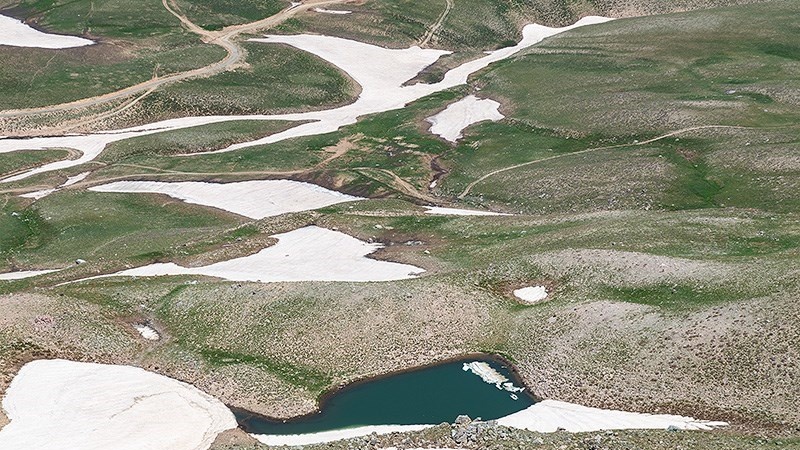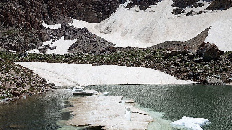 Di kaki pegunungan Bozsina ada beberapa danau kecil dan besar yang airnya disuplai oleh salju yang mencair dan gletser.