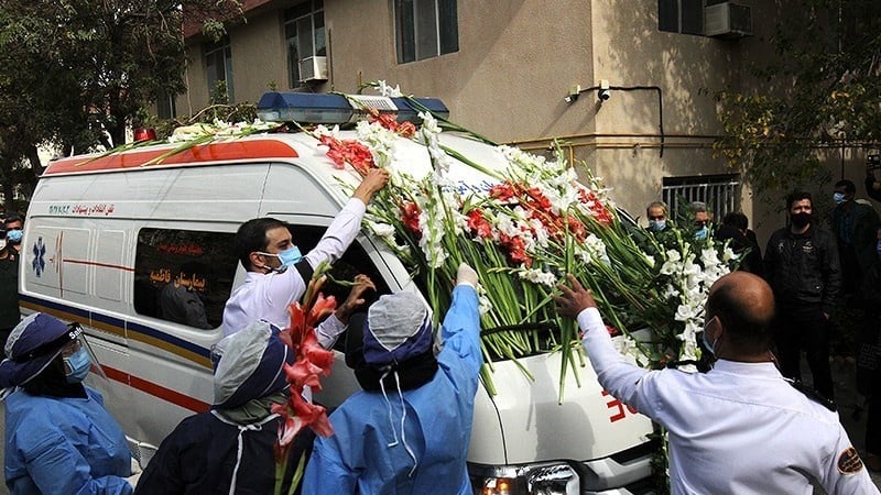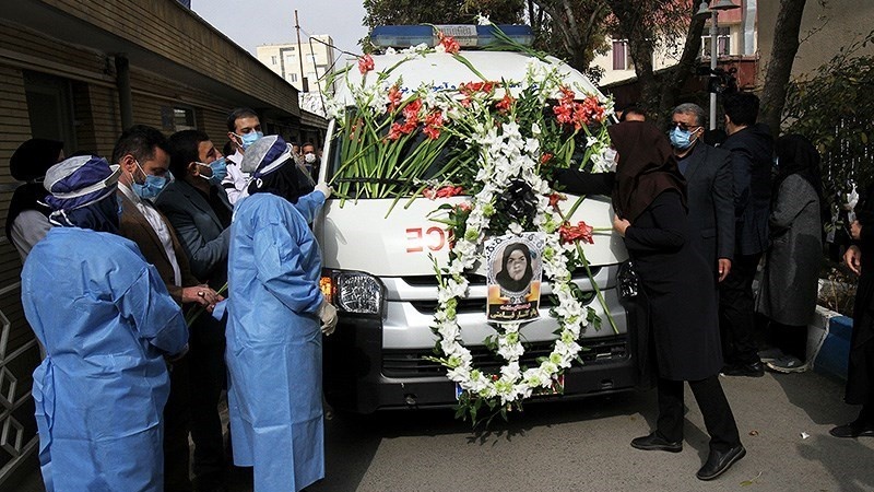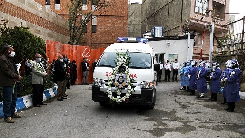Pemakaman perawat Rumah Sakit Fatemiyeh Hamedan, Iran.