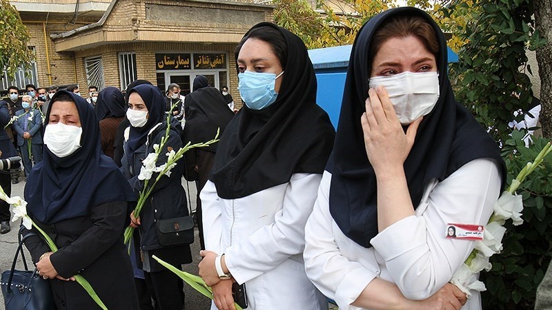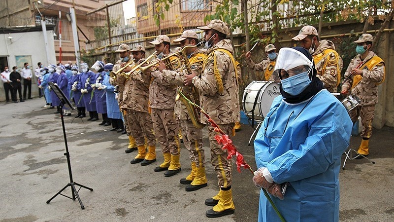 Hingga sekarang, puluhan perawat, dokter dan tenaga medis Iran telah meninggal dunia akibat COVID-19 demi merawat dan melayani para pasien virus ini. Mereka dijuluki sebagai Syuhada Pembela Kesehatan.