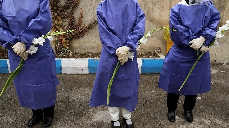 Hingga sekarang, puluhan perawat, dokter dan tenaga medis Iran telah meninggal dunia akibat COVID-19 demi merawat dan melayani para pasien virus ini. Mereka dijuluki sebagai Syuhada Pembela Kesehatan.