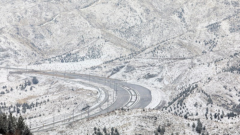 Salju tipis mengguyur bagian selatan kota Mashhad, timur laut Republik Islam Iran pada hari Minggu, 22 November 2020. Salju ini telah turun meskipun musim dingin masih sebulan lagi.