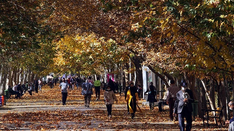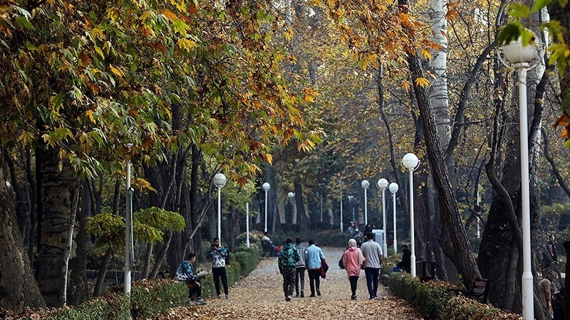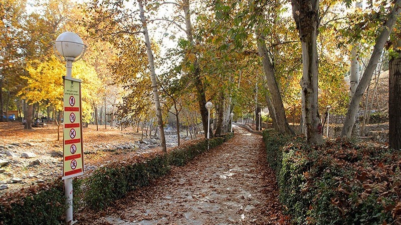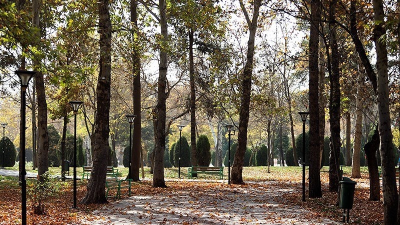 Berikut ini adalah keadaan trotoar jalan dan di sekitar taman di kota Mashhad ketika musim gugur: