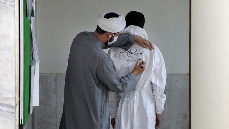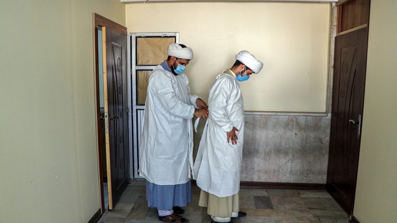 Pelajar-pelajar agama atau santri di Provinsi Khuzestan, Republik Islam Iran bergabung dengan Kelompok Jihad Kesehatan untuk membantu tenaga medis dalam menangani dan merawat pasien Virus Corona, COVID-19.