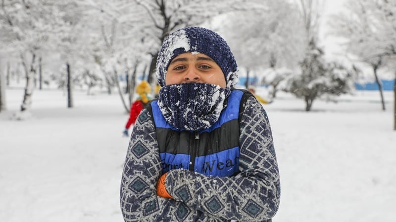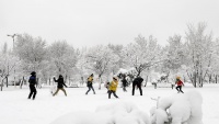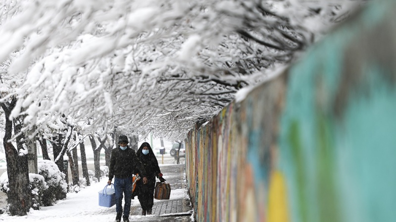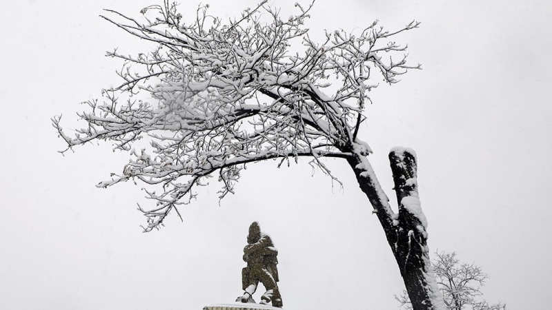 Hujan salju lebat mengguyur kota Ardabil dan daerah sekitarnya di barat laut Republik Islam Iran pada akhir musim gugur, Jumat, 18 Desember 2020.