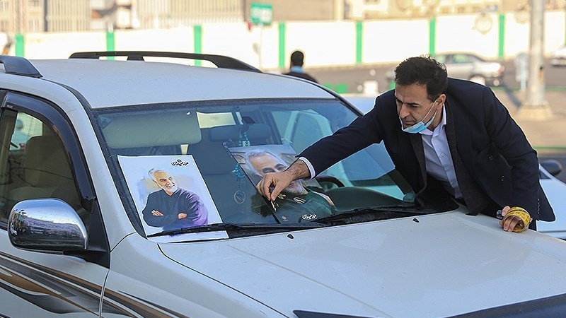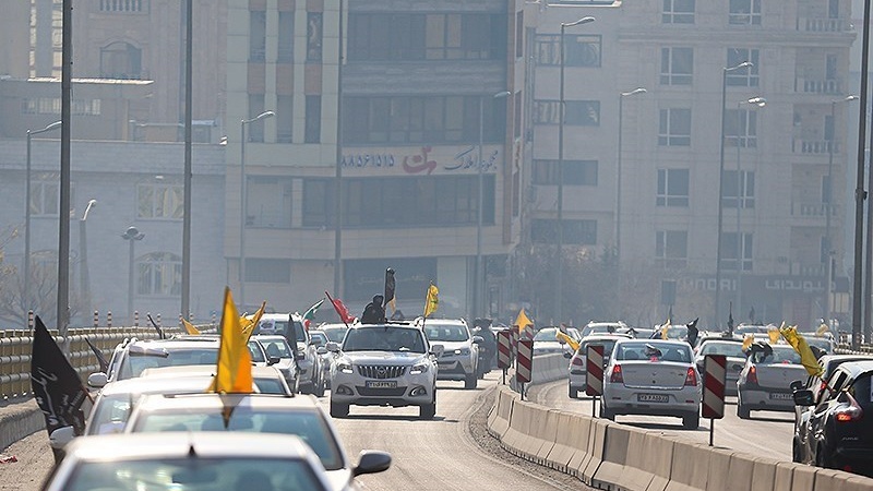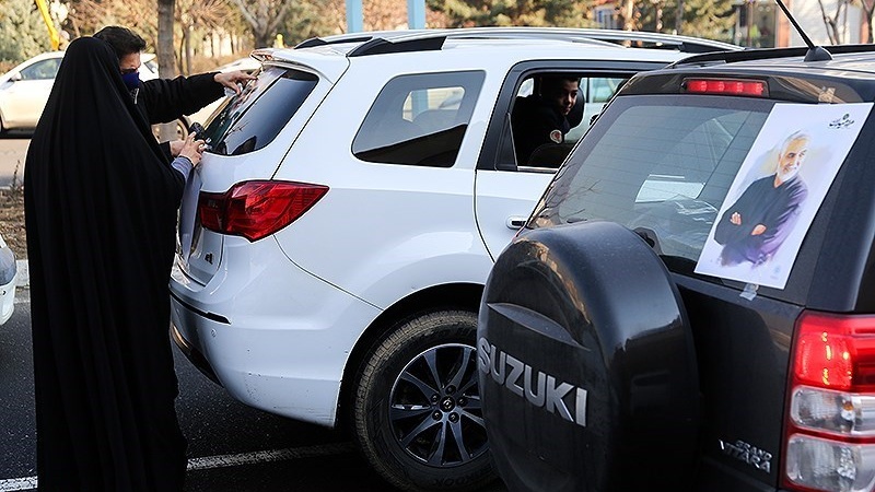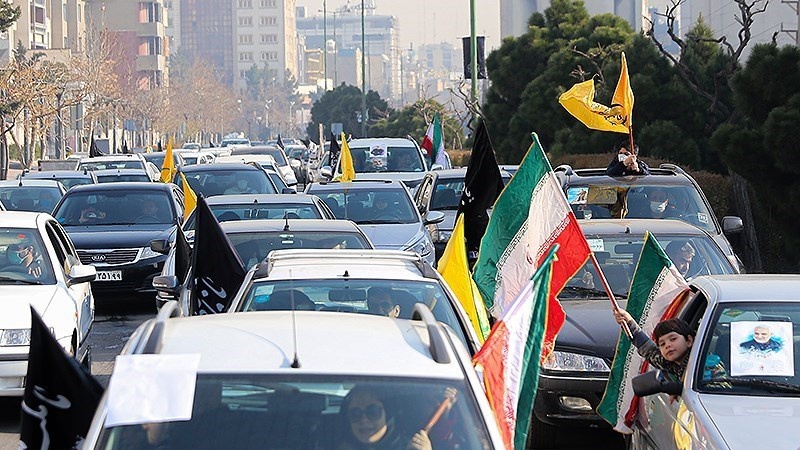 Warga Tehran memperingati setahun kesyahidan Letnan Jenderal Qassem Soleimani, Komandan Pasukan al-Quds Garda Revolusi Islam Iran (IRGC) dengan menggelar pawai bermobil di jalanan kota tersebut.
