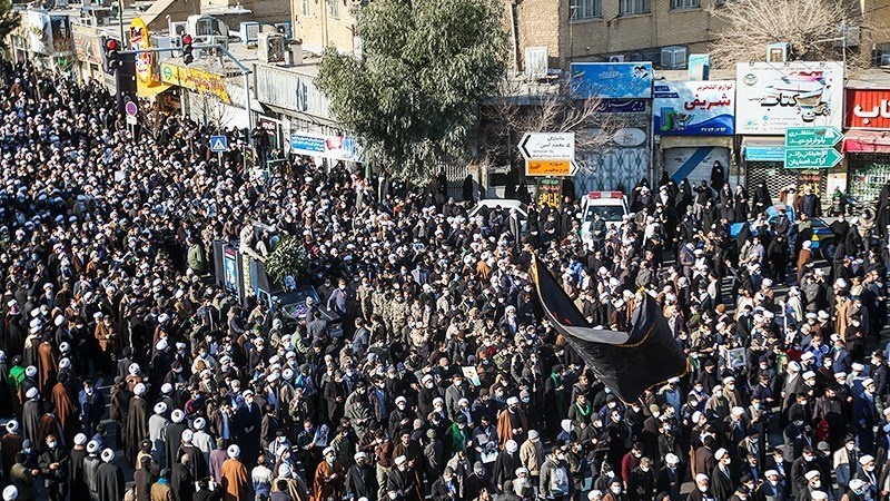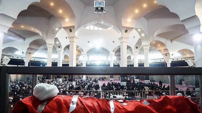 Puluhan ribu orang menghadiri tasyi' dan pemakaman jenazah Ayatullah Mohammad Taqi Misbah Yazdi di kota Qom, Republik Islam Iran pada Senin, 4 Januari 2021.