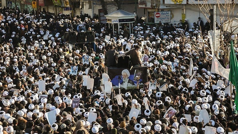 Pemakaman Jenazah Ayatullah Misbah Yazdi di Qom, Senin, 4 Januari 2021.