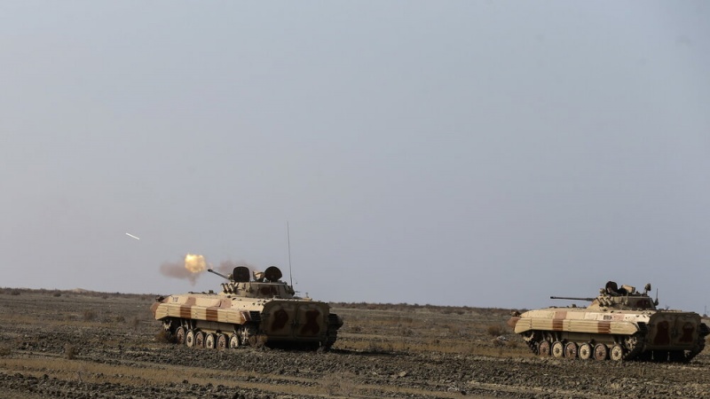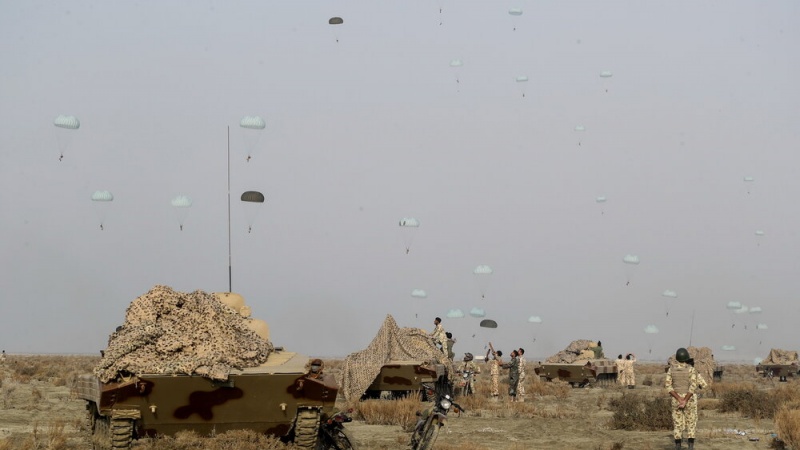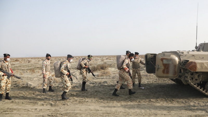 Pasukan Angkatan Darat Militer (AD) Republik Islam Iran menggelar manuver militer bersandi Eghtedar-99 di pantai Makran pada Selasa, 19 Januari 2021.