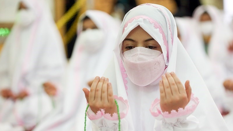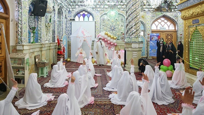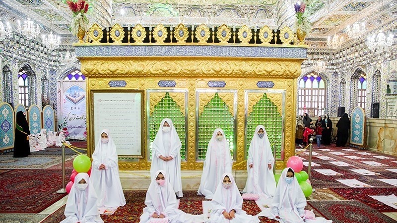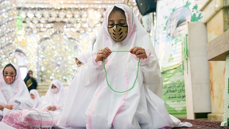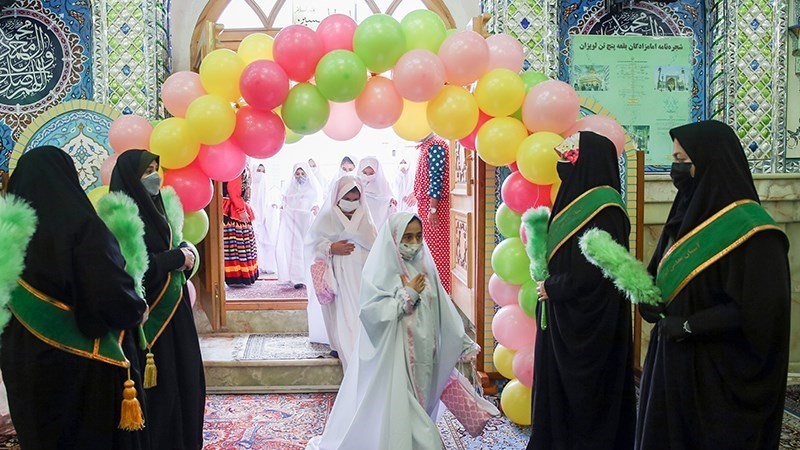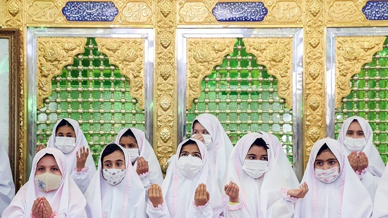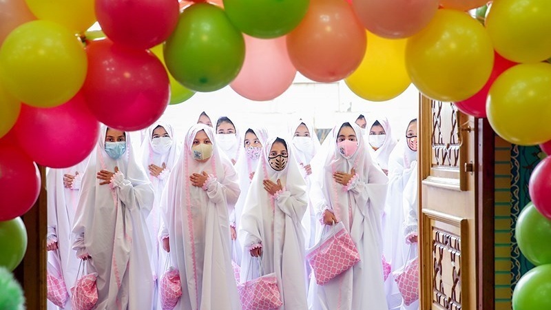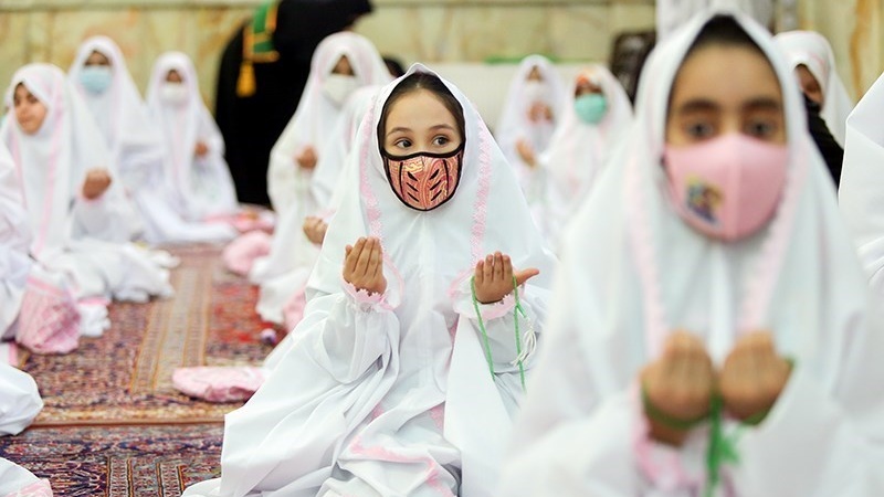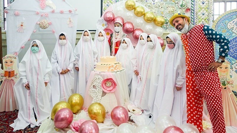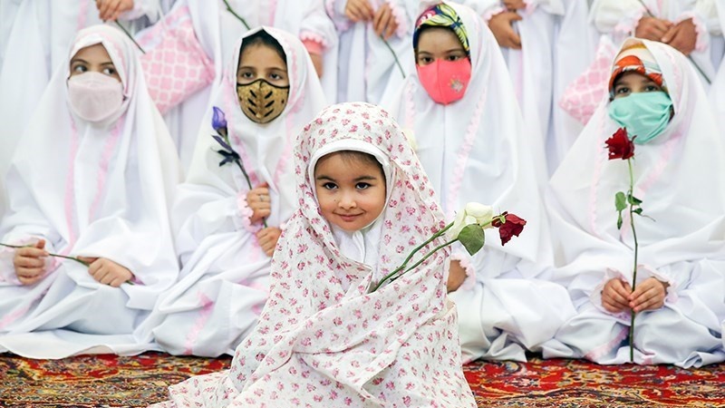 Sekitar 50 anak perempuan merayakan Jashn-e Taklif di Kompleks Imamzadeh PanjTan Lavizan, Tehran, ibu kota Republik Islam Iran pada hari Jumat (12/2/2021).