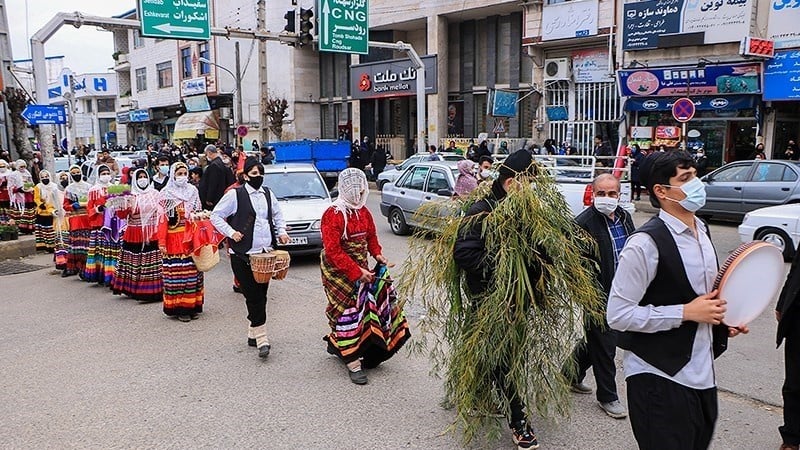 Warga kota Rahimabad menggelar karnaval budaya dan adat di wilayah ini pada Selasa (16/3/2021) untuk menyambut Nowruz. Rahimabad adalah kota dan ibukota Distrik Rahimabad, di Kabupaten Rudsar, Provinsi Gilan, Republik Islam Iran.