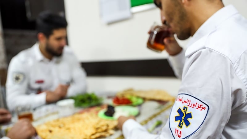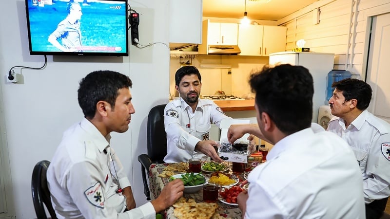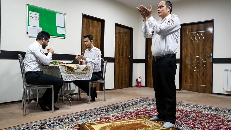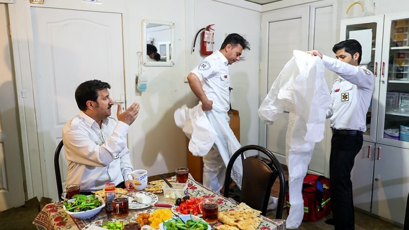 Suasana buka bersama tenaga medis Iran.