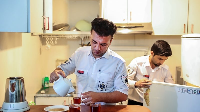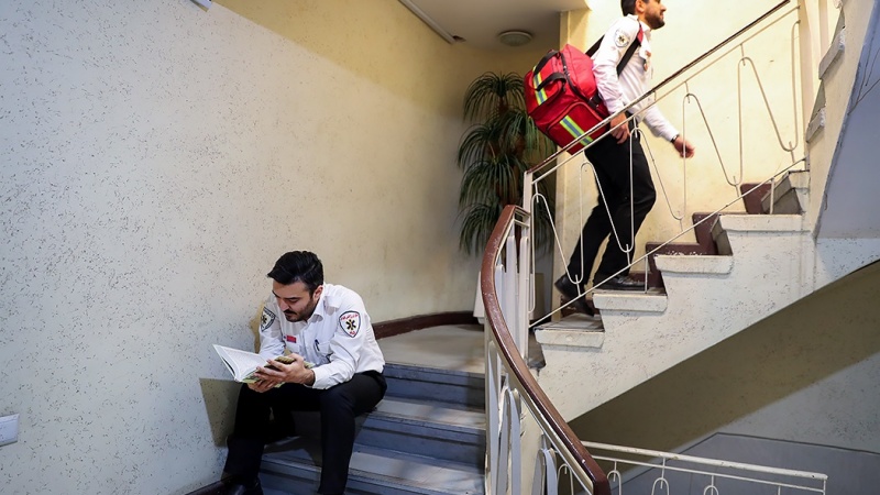 Petugas medis di pusat-pusat IGD dan ambulans di Tehran, ibu kota Republik Islam Iran juga bersiaga selama 24 jam secara bergantian untuk melayani masyarakat.