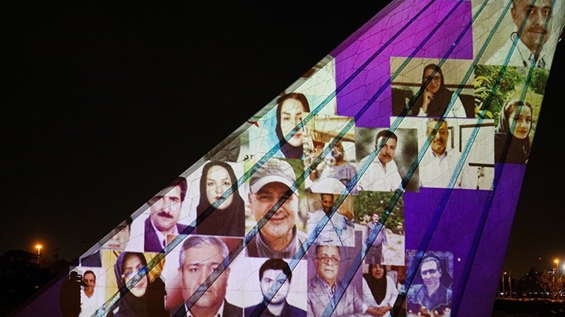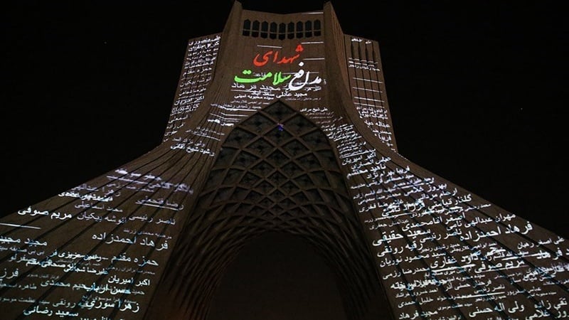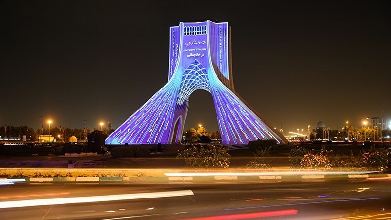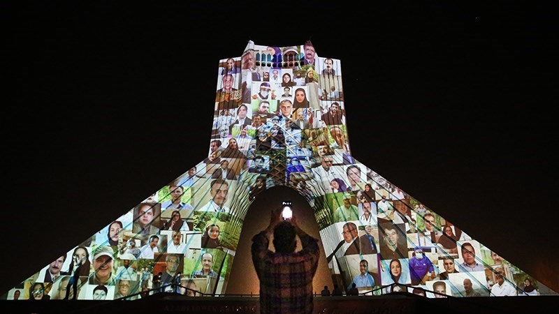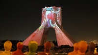 Video mapping dengan pencahayaan 3D diselenggarakan di Menara Azadi, Tehran, ibu kota Republik Islam Iran Rabu petang, 21 April 2021.