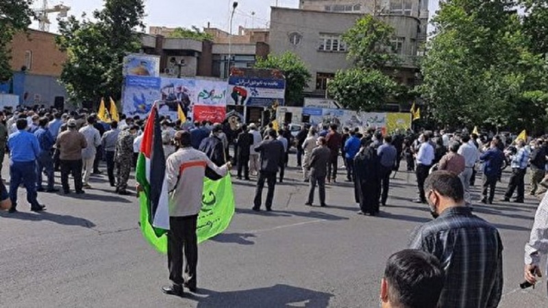Menurut laporan IRIB Jumat (7/5/2021), acara yang digelar secara spontan ini bendera Palestina dikibarkan di Bundaran Palestina dan bendera Israel serta Amerika Serikat dibakar.