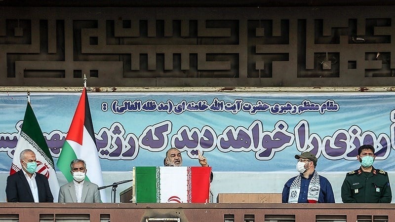 "Kami bersama kalian ketika rudal-rudal Qassem menghantam jantung rezim Zionis, dan ini adalah janji yang abadi," kata Salami.