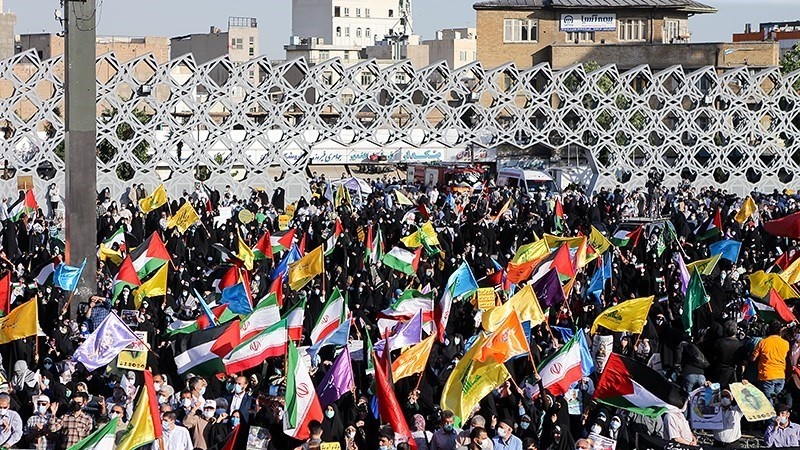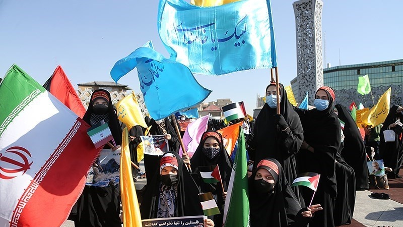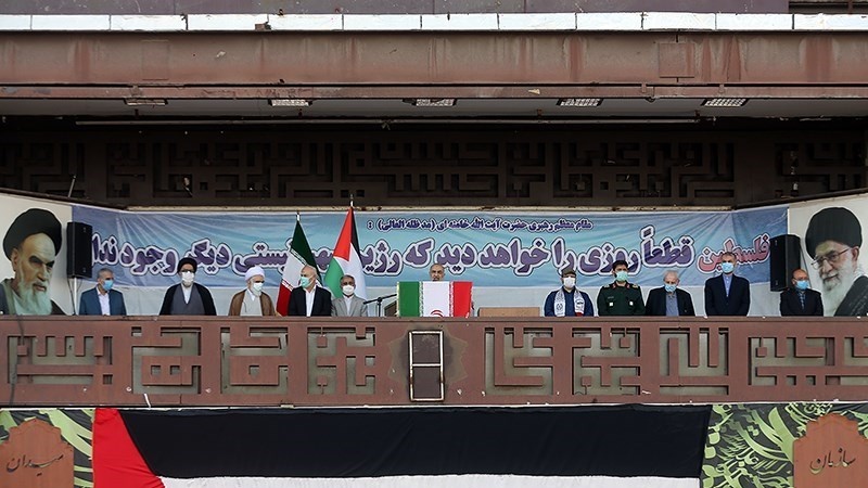 Ribuan warga Tehran, ibu kota Republik Islam Iran menggelar unjuk rasa mendukung rakyat Palestina di Bundaran Imam Husein as, Rabu (19/5/2021) sore.