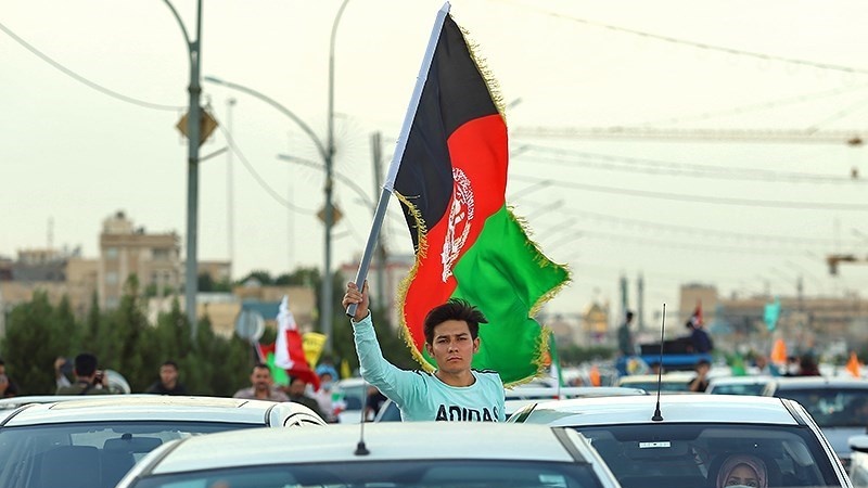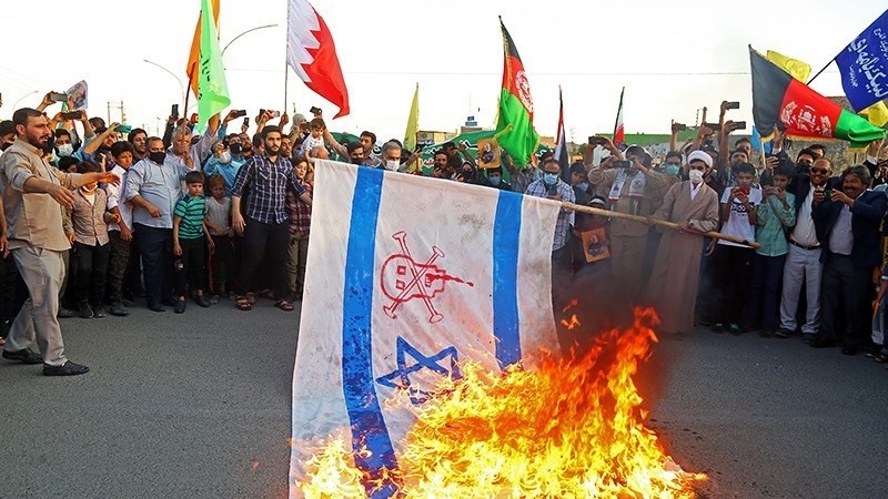 Unjuk rasa di Qom mendukung Palestina dan mengecam pembonan di Kabul, ibu kota Afghanistan, 17 Mei 2021.