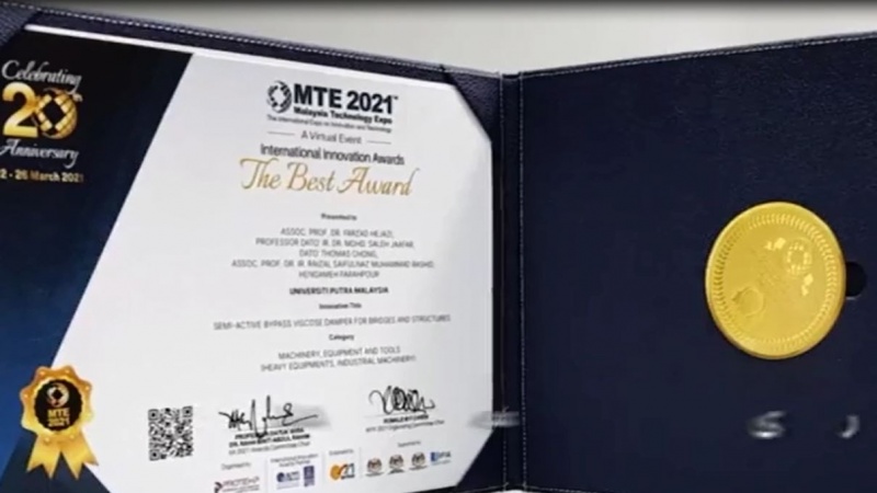 Menurut laporan wartawan IRIB di Kuala Lumpur, Doktor Farzad Hejazi mendapat medali emas dan penghargaan terbaik internasional 2021 berkat "Sistem Cerdas Peredam Gempa" yang diciptakannya.