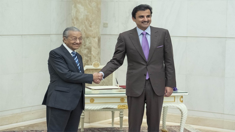 Perdana Menteri Malaysia, Mahathir Mohamad dan Emir Qatar Sheikh Tamim Hamad Al Thani, membahas hubungan bilateral dan perkembangan di Timur Tengah termasuk krisis Suriah dan Yaman selama bertemu di Putrajaya, Kamis (6/12/2018).