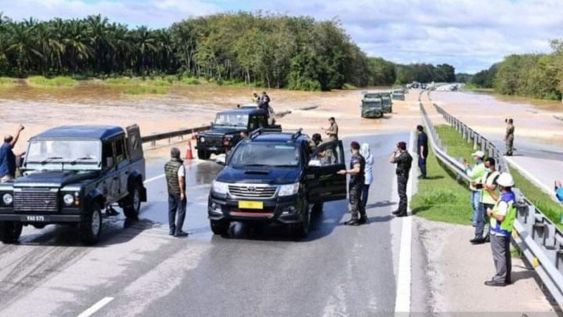 Sementara itu pada hari yang sama Raja Malaysia Seri Paduka Baginda Yang di-Pertuan Agong Al-Sultan Abdullah Ri'ayatuddin Al-Mustafa Billah mengemudikan mobil sendiri untuk melihat banjir di Jalan Tol Raya Pantai Timur (LPT).