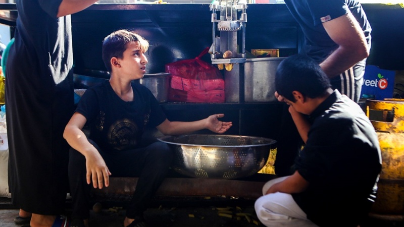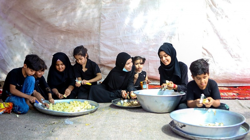 Anak-anak dan remaja Irak bersama keluarga mereka berusaha menjamu para peziarah Arbain dengan hidangan terbaik yang bisa mereka sediakan.