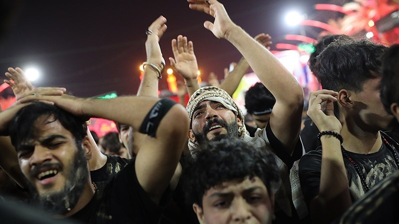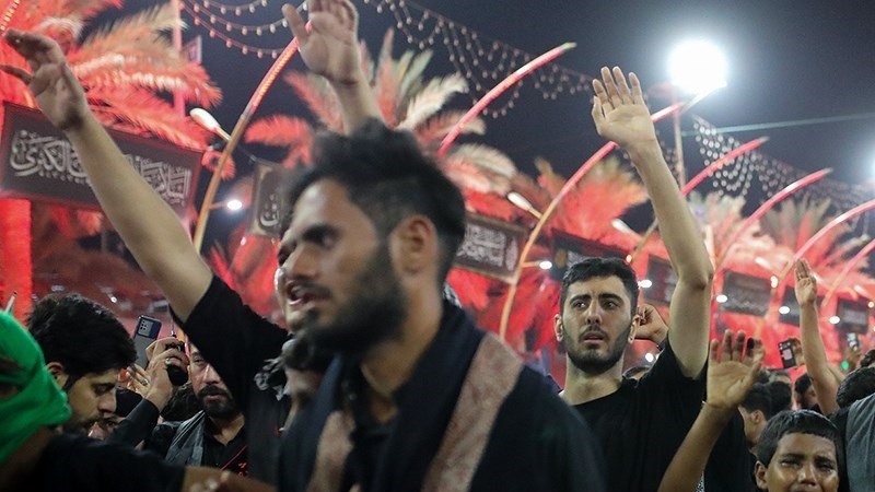 Jutaan peziarah Arbain memadati Bainul Haramain untuk mengikuti acara duka memperingati 40 hari kesyahidan Aba Abdillah Al Husein as, cucu tercinta Rasulullah Saw di Karbala, Irak, Jumat malam, 16 September 2022.