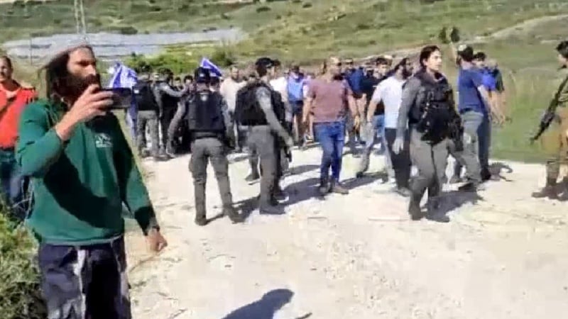 Pemukim rezim Zionis Israel berusaha masuk ke wilayah desa Burqa, Nablus selatan pada hari Senin, 1 Mei 2023.