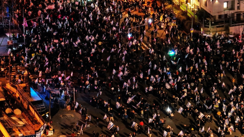 Ribuan pemukim Zionis berdemonstrasi menentang Perdana Menteri Israel Benjamin Netanyahu dan rencana reformasi yudisial yang diusungnya.
