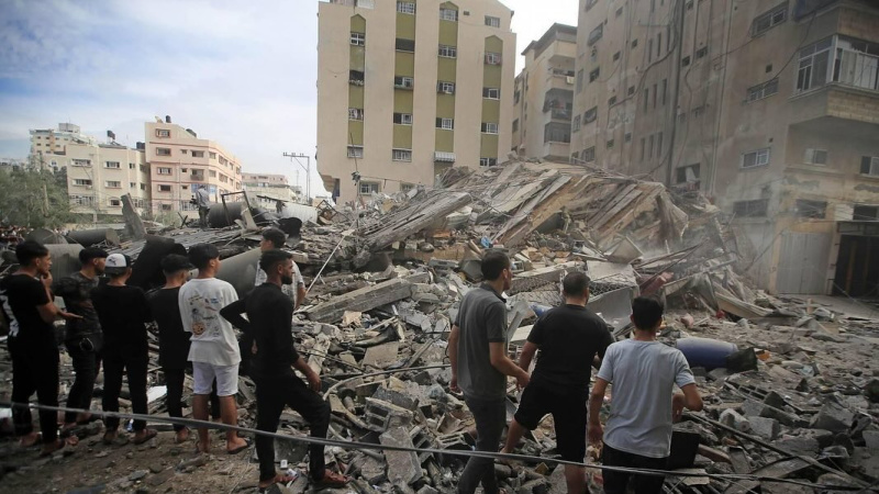 Serangan udara yang dilancarkan sejak hari Sabtu hingga hari Minggu (8/10/2023) itu juga menarget menara komersial, al-Watan Tower di Gaza.