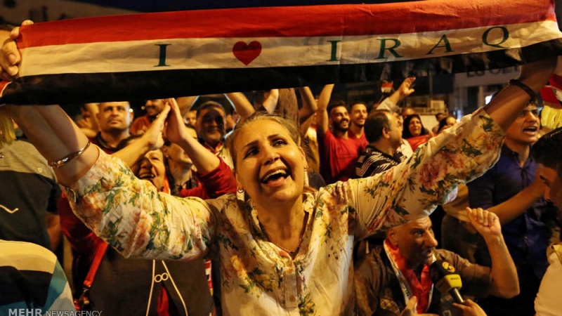 Rakyat Irak merayakan pembebasan kota Mosul dari pendudukan kelompok teroris Takfiri Daesh.