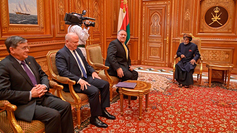 Menurut laporan kantor berita resmi Oman, menlu AS dan Sutlan Qaboos di pertemuan Senin malam membicarakan transformasi terbaru Asia Barat khususnya solusi friksi yang ada antara Qatar dan sejumlah negara kawasan. Pompeo di pertemun ini ditemani oleh duta besar AS untuk Oman.