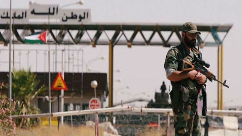 Seorang tentara Suriah terlihat berdiri di perbatasan Nasib dengan Yordania.