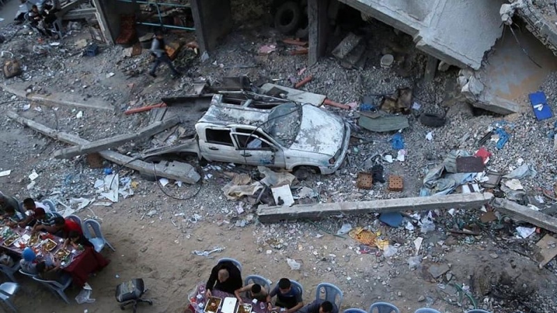 Berbuka di puing-puing gedung di Kota Gaza.