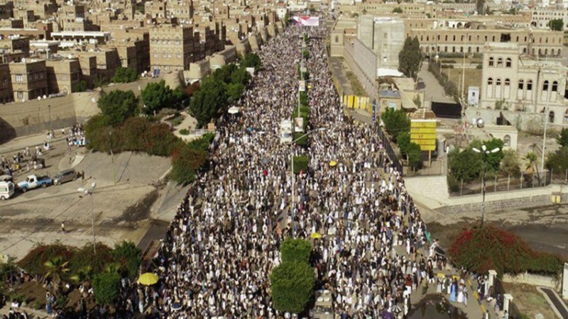 Stasiun televisi Al Masirah, Senin (19/8/2019) menayangkan secara langsung perayaan Idul Ghadir di kota Sanaa dan melaporkan, warga Yaman turun ke jalan-jalan ibukota untuk merayakan Hari Raya Ghadir Khum.