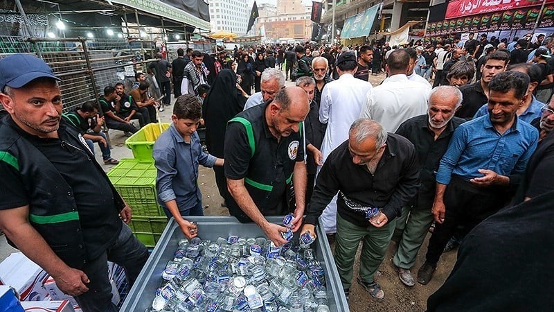 Setelah tiba di Irak, para peziarah berjalan kaki dari kota Najaf menuju Karbala yang berjarak sekitar 82 km untuk menghadiri acara Arbain Huseini as. Masyarakat Irak menyediakan makanan, minuman dan tempat istirahat gratis di sepanjang rute ini.